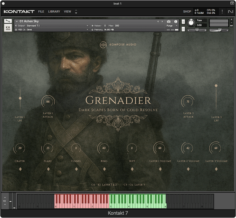 Grenadier is a powerful new Kontakt instrument designed for composers and sound designers drawn to the darker edges of cinematic sound. Featuring 10 expertly crafted presets, it delivers a palette of gritty textures, haunting atmospheres, deep low tones, and icy, fragmented leads.